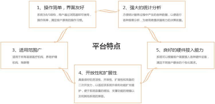 平台以互联网思维高效整合医护康资源,并运用最先进的互联网技术、大数据分析和管理,通过系统,整合医疗专家资源,从而服务基层医疗机构、养老护理机构和患者。